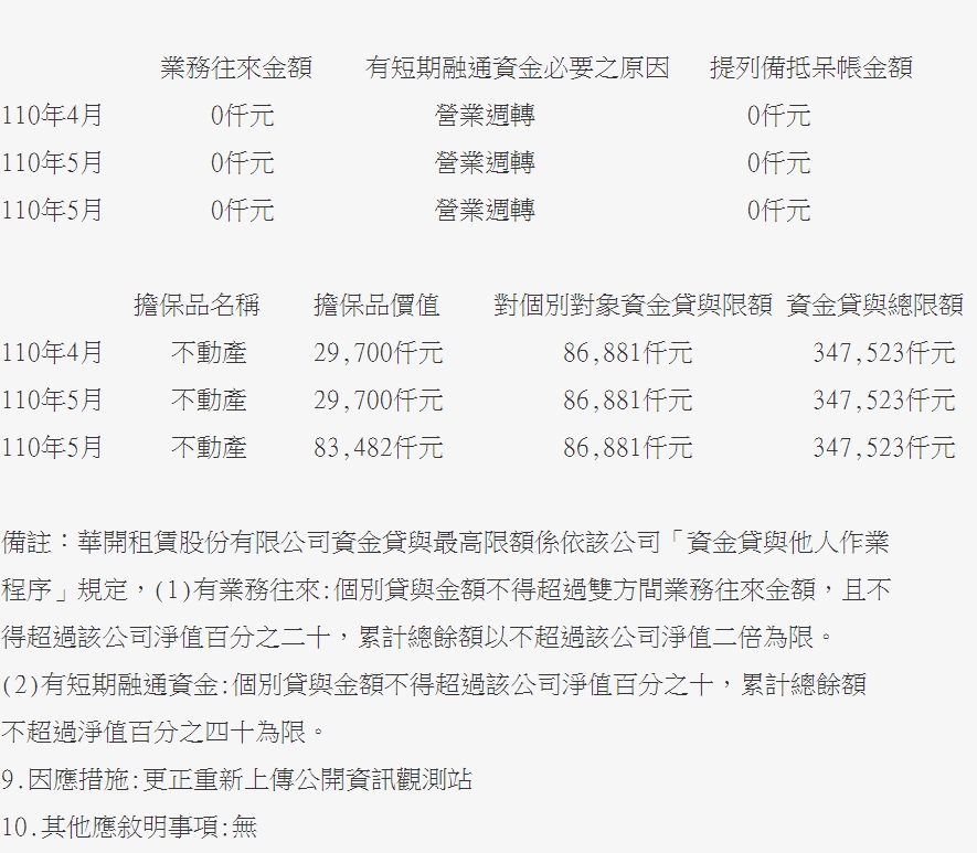 5.發生緣由:更正110年4月及5月資金貸與資訊